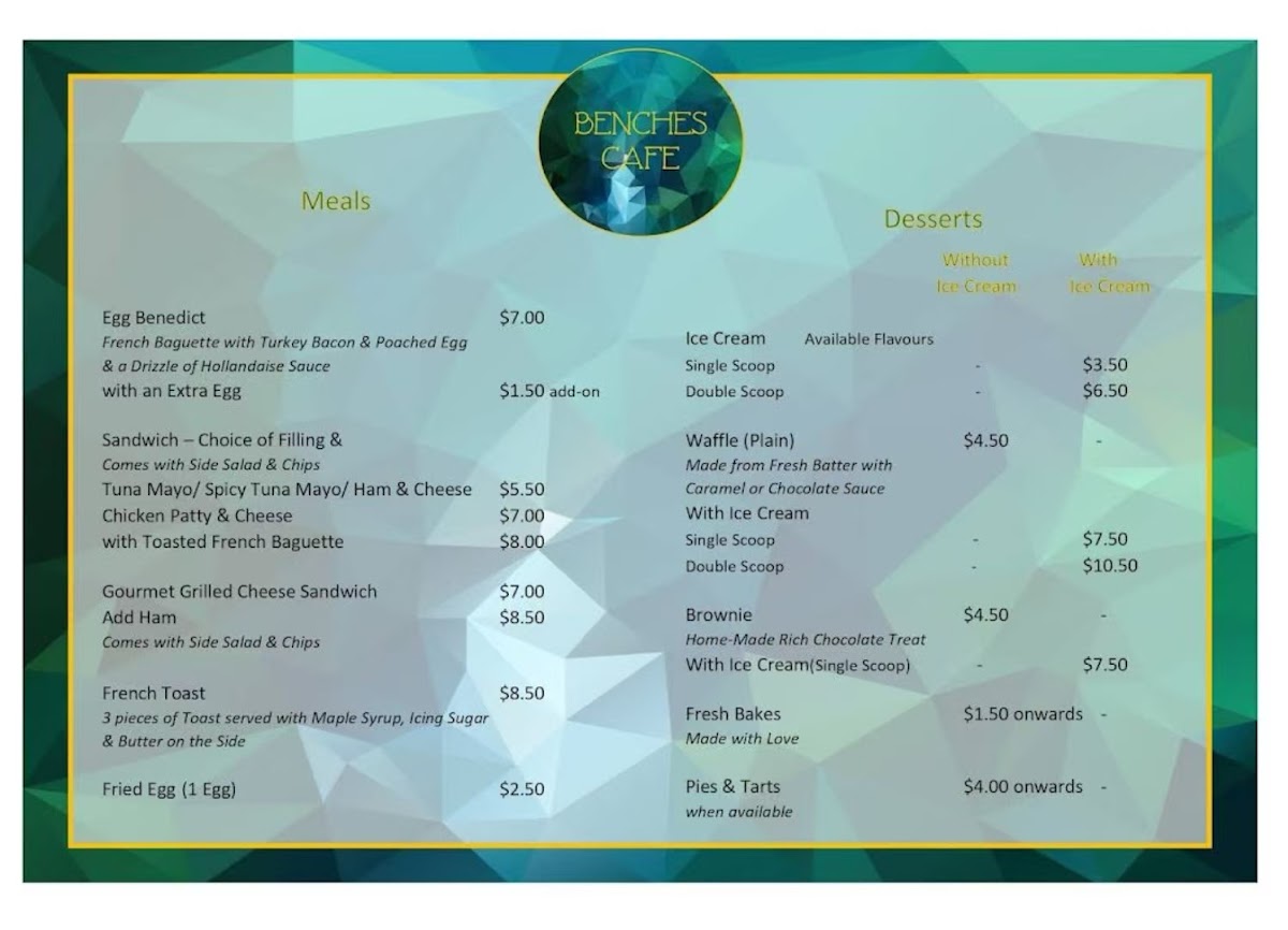 Experience the delightful combination of flavors and warmth at Benches Cafe; it's truly a place that feels like home.